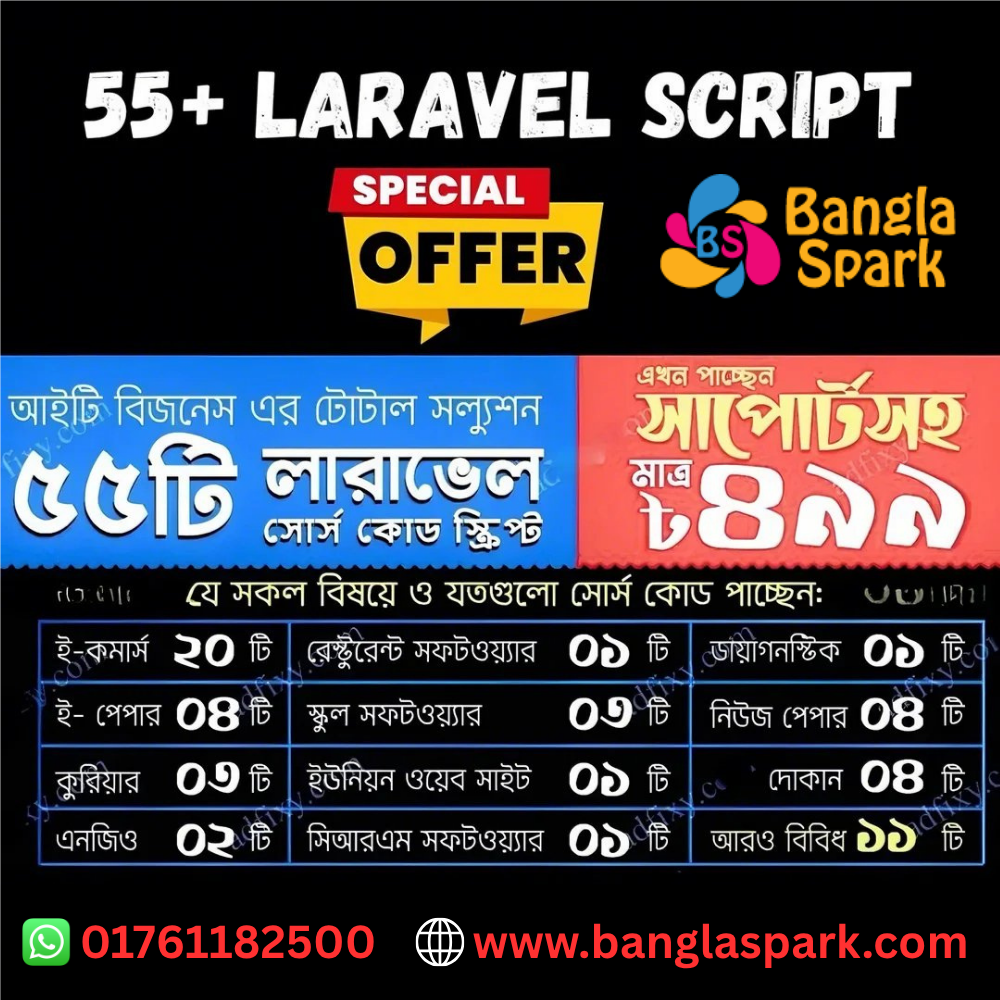 🚀 এখনই সংগ্রহ করুন এই পাওয়ারফুল Laravel স্ক্রিপ্ট কালেকশন এবং আপনার প্রজেক্ট ডেলিভারি গতি দিন ৫ গুণ দ্রুত!